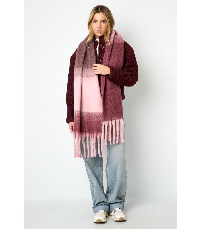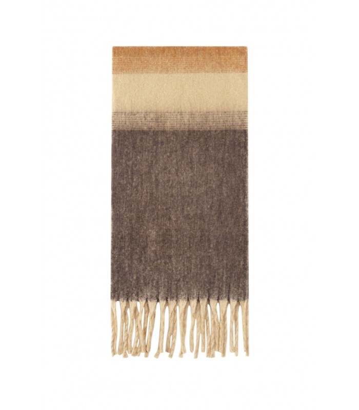 Is deze sjaal alleen functioneel of ook een fashionstatement? Beide! Met zijn zachte verloop van camel, beige en bruin is deze sjaal niet alleen behaaglijk, maar ook stijlvol. Perfect voor herfst en winter. Een must have accessoire voor wie comfort wil combineren met flair. Trendy kleurverloop en franjes De zachte kleurblokken sluiten moeiteloos aan bij een neutrale of aardetint look. De lange franjes zorgen voor een speels effect, terwijl de oversized pasvorm warmte biedt. Ideaal voor zowel casual als geklede outfits. Deze winteraccessoire maakt elke outfit compleet.