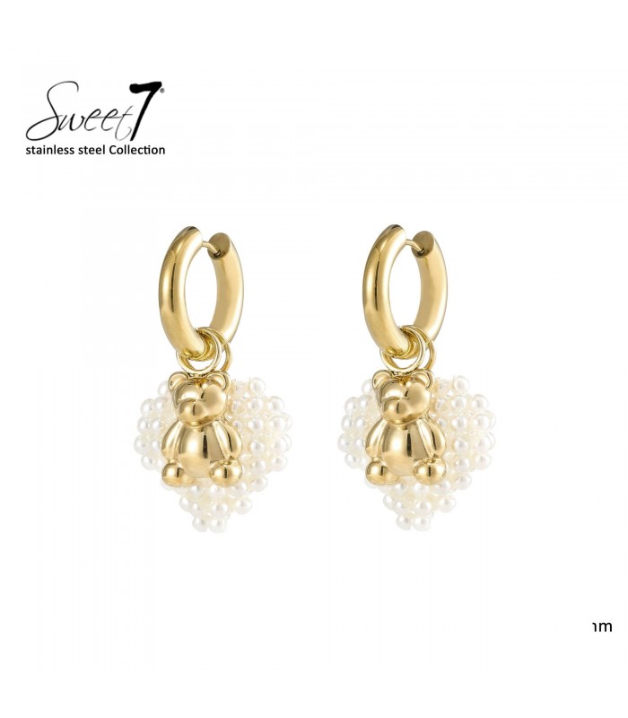 Mag sieradenplezier ook schattig zijn? Deze goudkleurige oorbellen met teddybeer en parelhartje combineren fun met elegantie. De glanzende beer hangt voor een hartvorm van mini pareltjes, wat zorgt voor een verrassend en charmant effect. Een opvallend accessoire voor wie houdt van vrolijke details met een luxe uitstraling. Stainless steel en goudkleurig beertje Gemaakt van stainless steel voor langdurige kwaliteit en glans. De combinatie van goud en wit past perfect bij zowel een casual jeans look als een romantische outfit. Deze fashion oorbellen zijn de eyecatcher voor wie speelsheid en stijl moeiteloos wil combineren.