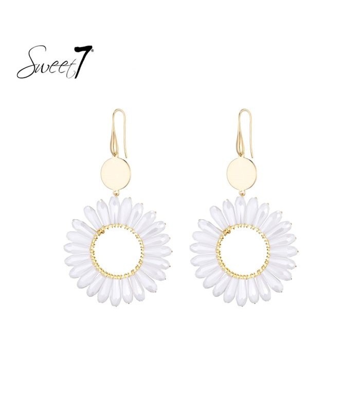 Frisse eyecatcher met karakter. Oorbellen die doen denken aan een zonnige lentedag. Wat maakt deze oorbel zo bijzonder? De bloemvorm met witte blaadjes en goudkleurige cirkel vangt direct het licht. Deze statement oorbellen geven elke outfit een frisse look.