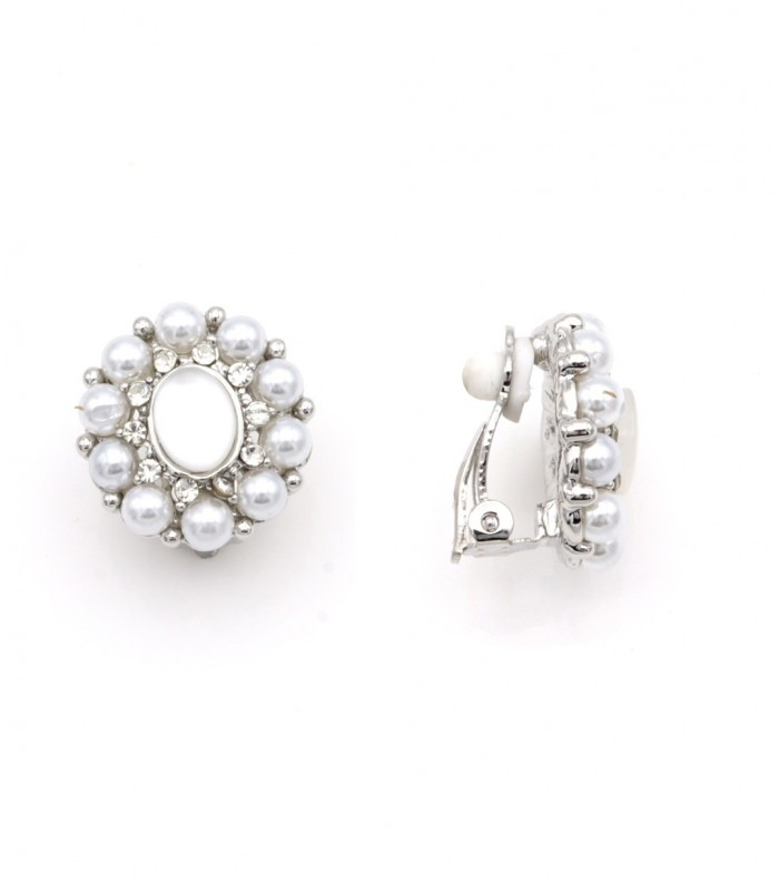 Zoek je oorclips die klasse uitstralen? Deze ronde oorclips combineren een centrale ovale steen met een rand van glanzende imitatieparels en fonkelende strass. Een stijlvol ontwerp dat perfect past bij zowel feestelijke als formele gelegenheden. Chic zonder gaatjes De zilverkleurige basis geeft een luxueuze afwerking, terwijl de zachte rubber pads zorgen voor draagcomfort. Ideaal voor wie elegante oorbellen wil dragen zonder gaatjes in de oren.