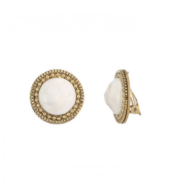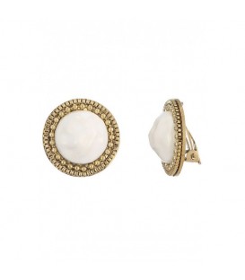 Hoe geef je je outfit in een beweging meer allure? Met deze oorclips voeg je moeiteloos een stijlvol accent toe. De ronde, witte steen wordt omlijst door een fijn bewerkte goudkleurige rand voor een elegante uitstraling. Comfort en uitstraling in een Dankzij de sluiting draag je deze oorbellen zonder gaatjes, zonder in te leveren op stijl. De zachte rubbertjes zorgen voor comfort, zelfs bij langdurig dragen. Perfect voor wie houdt van klasse met een subtiel statement.