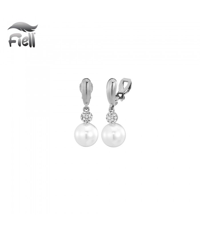 Oorclips met witte parel en strass bol in zilverkleurig