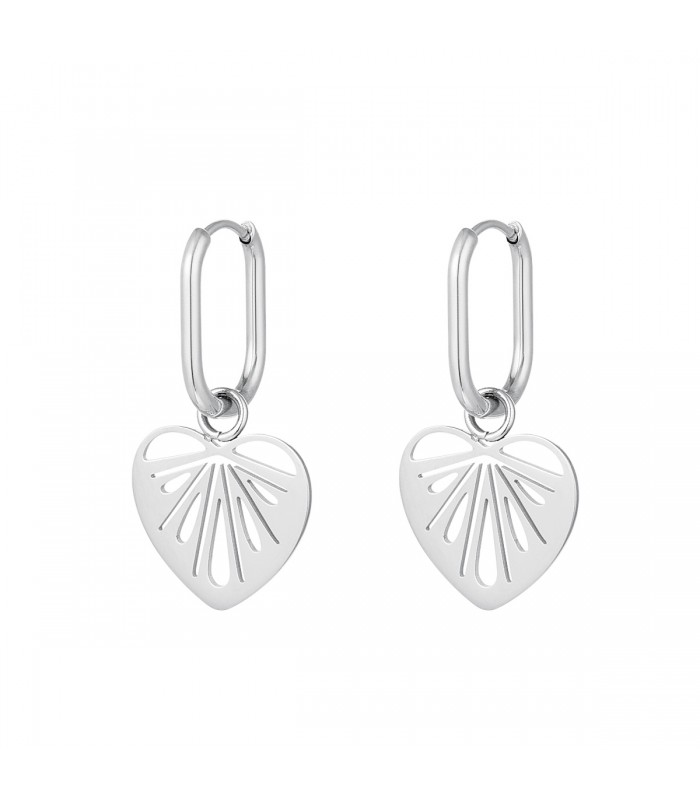 Zilverkleurige hartvormige oorbellen met uitgesneden details. Heb je een feestje, een bruiloft of wil je gewoon jezelf verwennen? Yehwang is een modern, hip en eigentijds sieraden merk. Veel glitter, zilver en goud met vaak een uitstekende afwerking zoals gold plating en gemaakt van roestvast staal. Hierdoor krijgen de oorbellen niet alleen een hippe uitstraling, maar zijn ze ook gemaakt van kwalitatief, hoogwaardig materiaal. De oorbellen zijn nikkelvrij.
