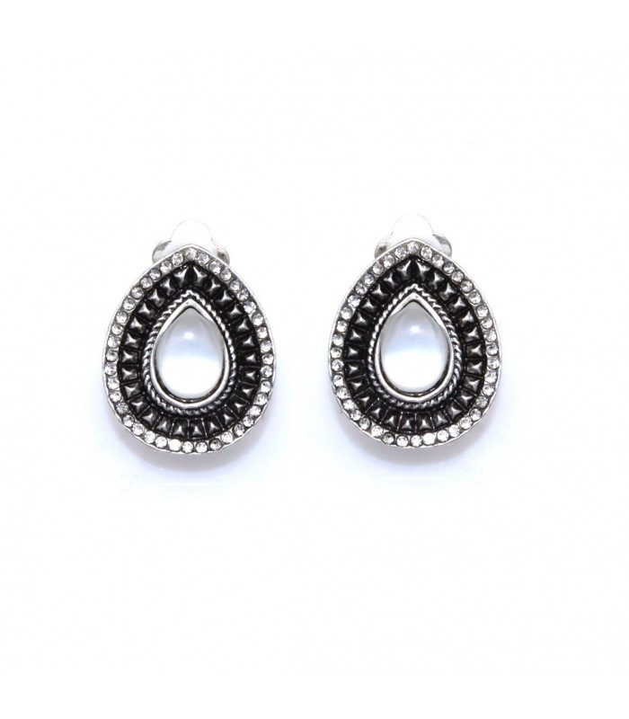 Vintage glamour in een modern jasje Wil je een klassieke look met een edgy twist? Deze oorclips combineren een parelmoer druppelvorm met een opvallend zwart relief en fonkelende steentjes. Het resultaat: een eyecatcher die moeiteloos past bij zowel een avondjurk als een boho-outfit. Comfortabel en stijlvol zonder gaatjes De elegante clipvorm biedt draaggemak zonder concessies aan stijl. De donkere omlijsting accentueert het lichte middelpunt, wat zorgt voor diepte en contrast. Perfect voor wie houdt van statement sieraden met karakter.