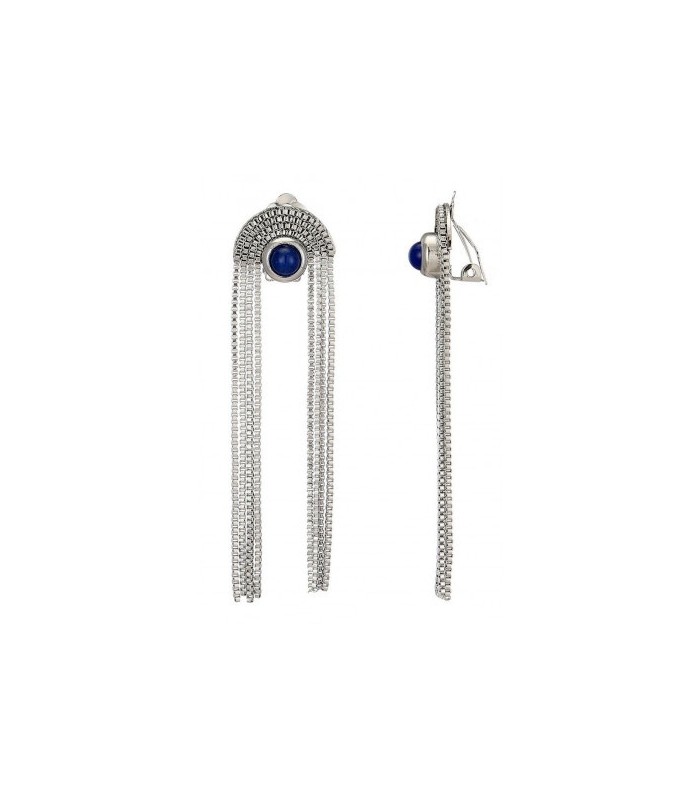 Oorclips met zilverkleurige franjes en een blauw steentje