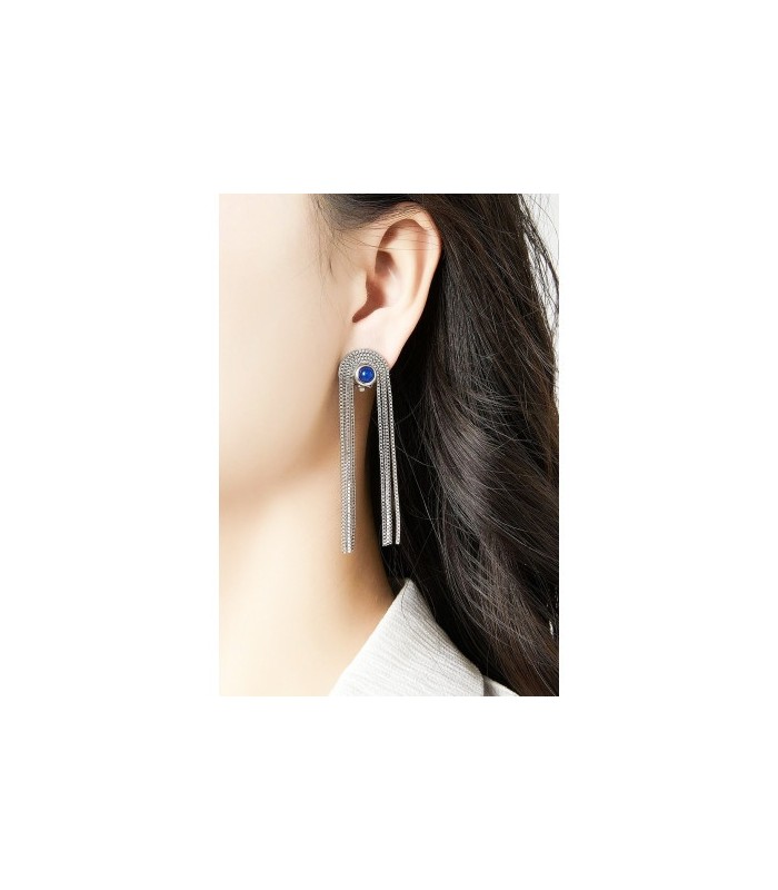 Wil je een statement maken zonder gaatjes? Deze zilverkleurige oorclip met donkergroene steen en lange schakelkettingen geeft elke look een moderne update. Ideaal voor wie houdt van opvallende fashion oorbellen met een luxe uitstraling.