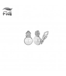 Oorclips met kunst parel en zirkonia steentjes in zilverkleur