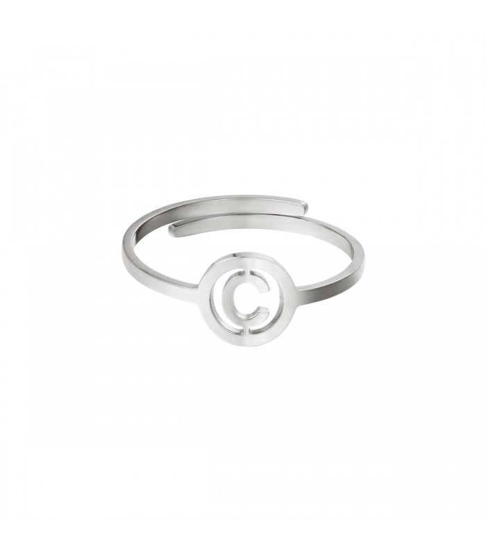 Zilverkleurige ring met initiaal C in cirkel. Heb je een feestje, een bruiloft of wil je gewoon jezelf verwennen? Yehwang is een modern, hip en eigentijds sieraden merk. Veel glitter, zilver en goud met vaak een uitstekende afwerking zoals gold plating en gemaakt van roestvast. Hierdoor krijgen de ringen niet alleen een hippe uitstraling, maar zijn ze ook gemaakt van kwalitatief, hoogwaardig materiaal.