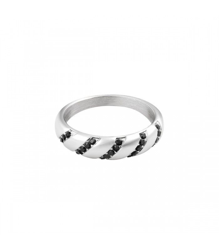 Zilverkleurige smalle croissant ring met zwarte zirkoonstenen (16). Heb je een feestje, een bruiloft of wil je gewoon jezelf verwennen? Yehwang is een modern, hip en eigentijds sieraden merk. Veel glitter, zilver en goud met vaak een uitstekende afwerking zoals gold plating en gemaakt van roestvast. Hierdoor krijgen de ringen niet alleen een hippe uitstraling, maar zijn ze ook gemaakt van kwalitatief, hoogwaardig materiaal. De ring is nikkelvrij.