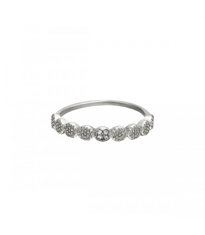 Zilverkleurige ring gespot (17). Heb je een feestje, een bruiloft of wil je gewoon jezelf verwennen? Yehwang is een modern, hip en eigentijds sieraden merk. Veel glitter, zilver en goud met vaak een uitstekende afwerking zoals gold plating en gemaakt van roestvast. Hierdoor krijgen de ringen niet alleen een hippe uitstraling, maar zijn ze ook gemaakt van kwalitatief, hoogwaardig materiaal. De ring is nikkelvrij.