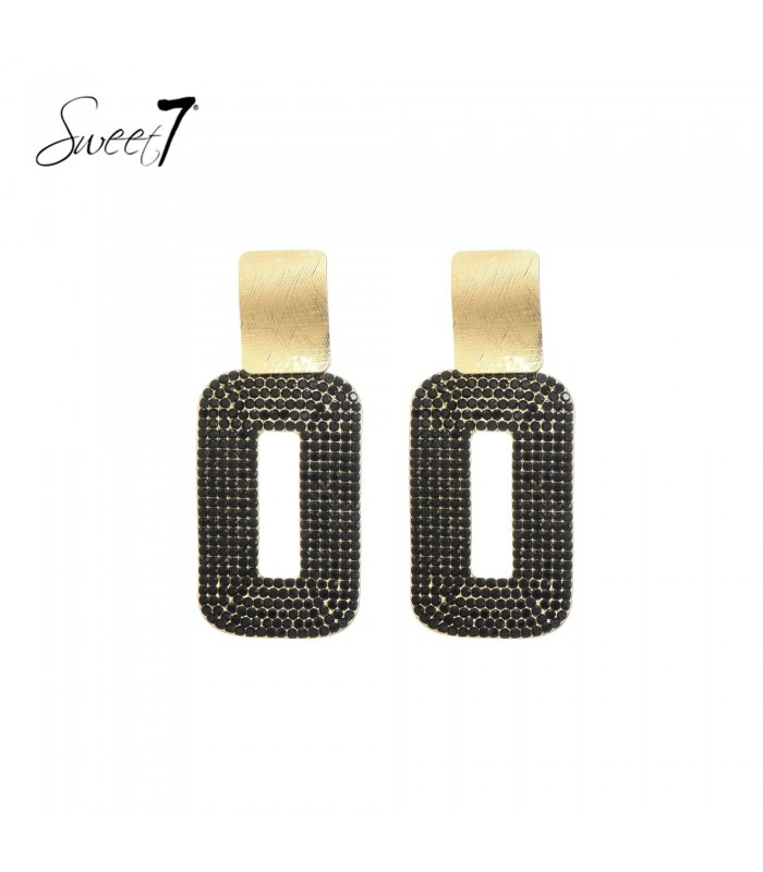 Wil je kracht en elegantie combineren in een sieraad? Deze rechthoekige oorbellen van Sweet7 stralen pure klasse uit. De zwarte steentjes geven een subtiele glans, terwijl de goudkleurige top voor contrast en luxe zorgt. Perfect voor een avondlook of een stijlvolle upgrade van je dagelijkse outfit.