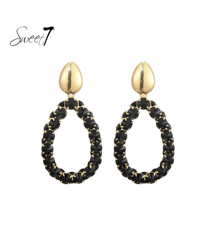 Wil je een statement maken zonder te overdrijven? Deze oorbellen combineren zwarte facetstenen met een goudkleurige afwerking, wat zorgt voor een gedurfde, maar elegante uitstraling. Perfect bij een zwarte kleding of juist als opvallend accent bij een minimalistische outfit. Trendy combinatie van goud en zwart. De druppelvorm is tijdloos, terwijl het gevlochten effect van de zwarte stenen zorgt voor een moderne twist. Deze fashion oorbellen passen moeiteloos bij zowel feestlooks als alledaagse chic. Een must have voor de sieradenliefhebber die houdt van contrast en karakter.