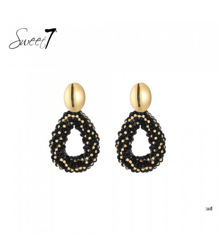 Zoek je oorbellen die zowel glamoureus als speels zijn? Deze zwart, gouden oorbel van Sweet7 combineert elegante metallic accenten met een opvallend geweven druppelvorm. De combinatie van kraaltjes in goud en zwart zorgt voor een gedurfde fashion look die meteen opvalt. Perfect voor een avondlook De glanzende goudkleurige knop geeft deze oorbellen een luxe touch. Ideaal te stijlen bij een zwarte jurk of een chique blouse. Een musthave voor trendsetters.