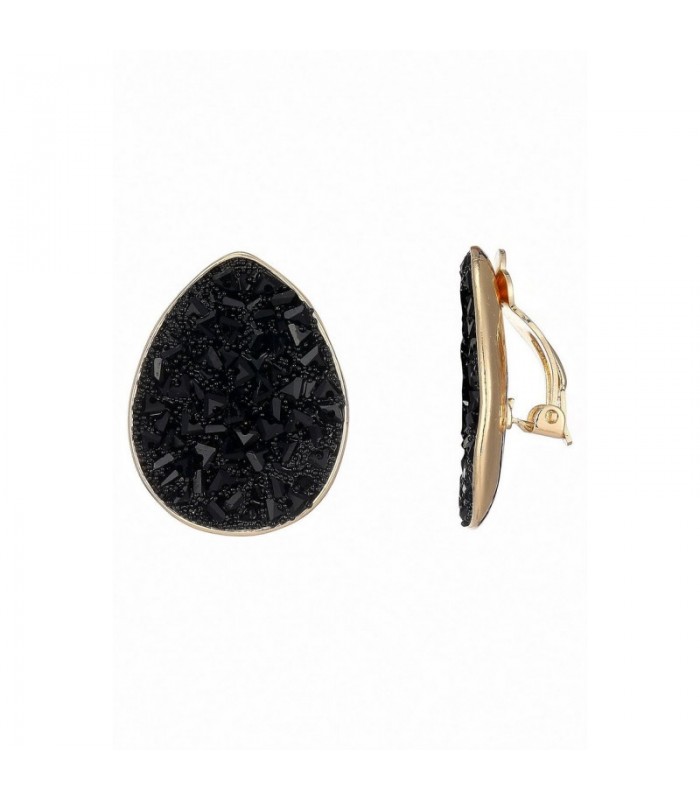 Tijdloos zwart met glamour. Hoe creeer je een stijlvolle statement die overal bij past? Met deze oorclips in diepzwart. De glinsterende steentjes in druppelvorm zorgen voor een chique en mysterieuze uitstraling die moeiteloos matcht met elke look. Elegant en comfortabel De goudkleurige omlijsting geeft warmte aan het donkere design en benadrukt de luxe uitstraling. Dankzij de clipsluiting zijn deze fashion oorbellen ideaal voor wie geen gaatjes heeft, maar wel impactvolle sieraden wil dragen.