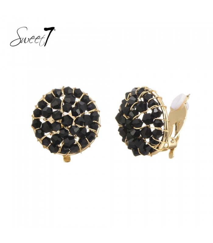 Hoe geef je je look een stijlvol tintje zonder gaatjes in je oren? Met deze stijlvolle oorclips van Sweet7. De zwarte facetkraaltjes zijn elegant verwerkt in een ronde goudkleurige structuur. Tijdloos en toch modern, perfect voor een chique avond of zakelijke outfit. Comfort en klasse gecombineerd De ronde vorm geeft een subtiel retrogevoel, terwijl de zwarte glans zorgt voor een krachtige uitstraling. Dankzij de stevige clips met zachte rubbertjes blijven ze de hele dag comfortabel zitten. Voeg ze toe aan je collectie voor moeiteloze elegantie, keer op keer.